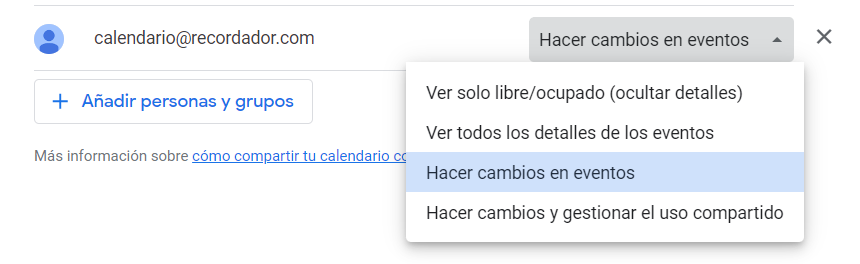 3. Añade el email calendario@recordador.com